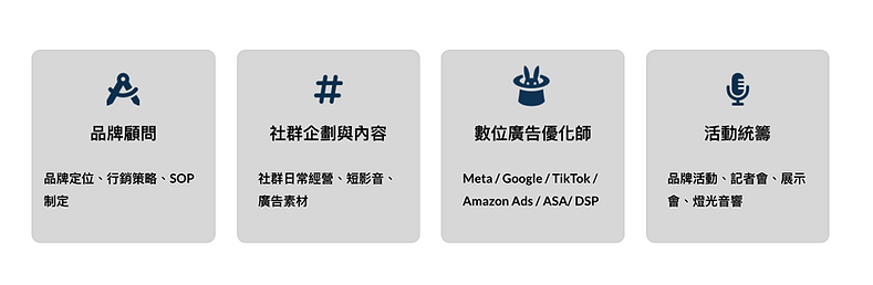 我們是一家結合 數據洞察、創意內容與跨平台媒體操作的整合行銷公司,致力協助品牌在競爭激烈市場中脫穎而出。